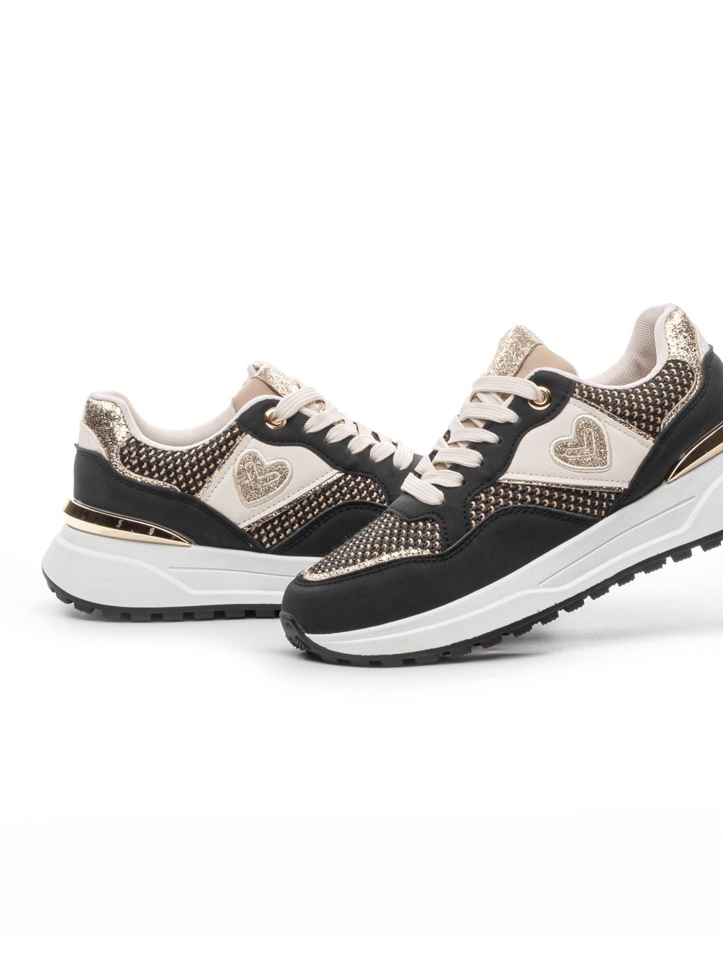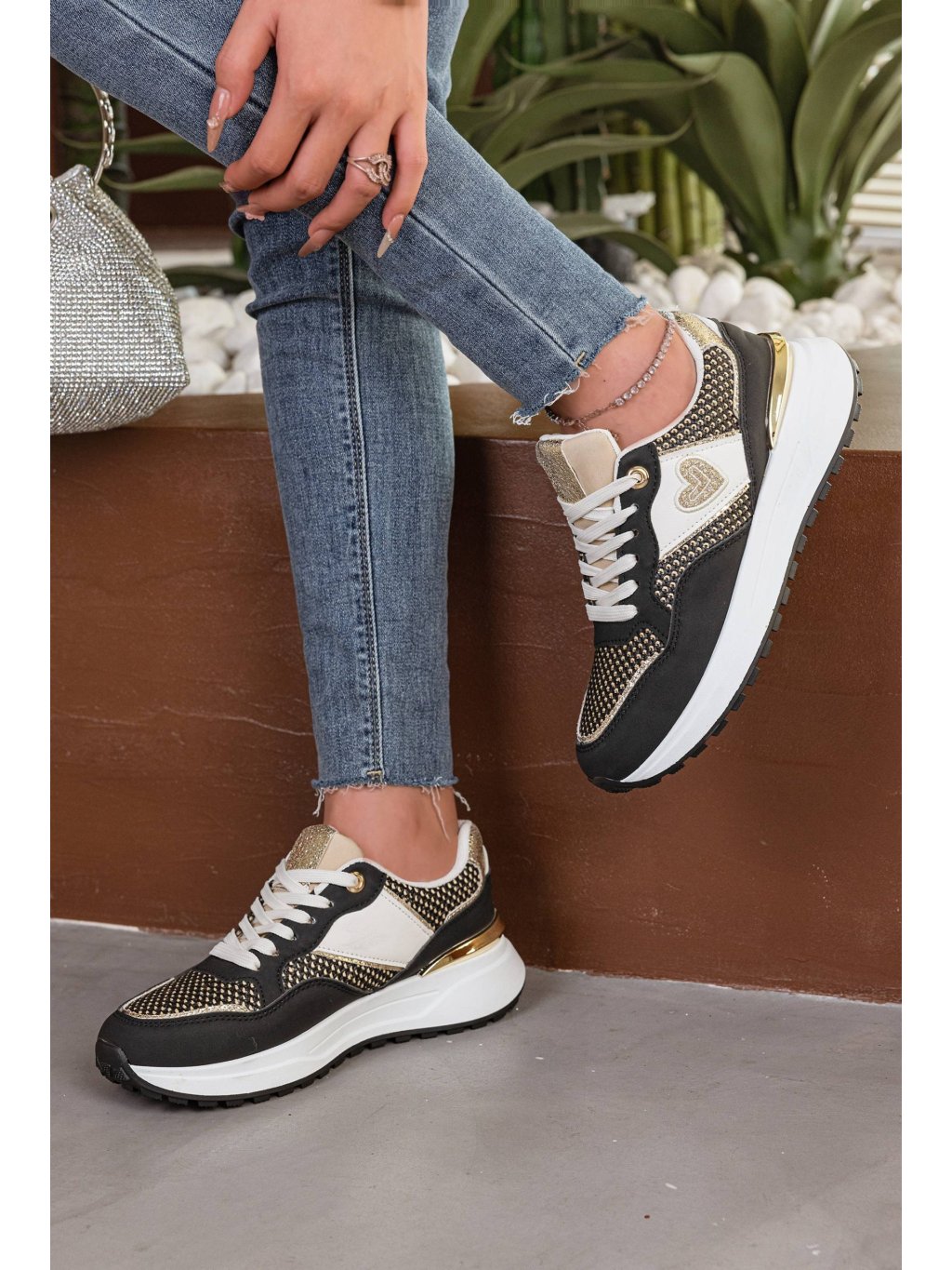 ČIERNE DÁMSKE TENISKY SO ZLATÝM ZDOBENÍM B2129